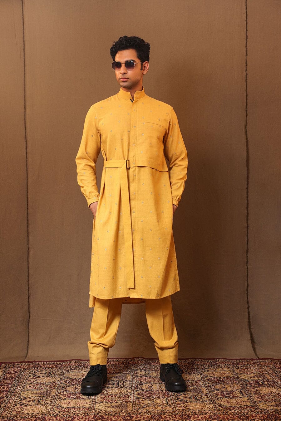 Mustard Zari Club EMB Belted Kurta Set (2 PCS)