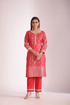 Noorika Red Chanderi Kurta With Pant And Dupatta - Set Of 3