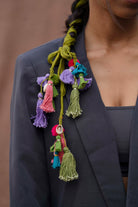 Un montón de borlas y pompones hechos a mano de colores brillantes unidos para crear un parandi perfecto para el boho que llevas dentro.
