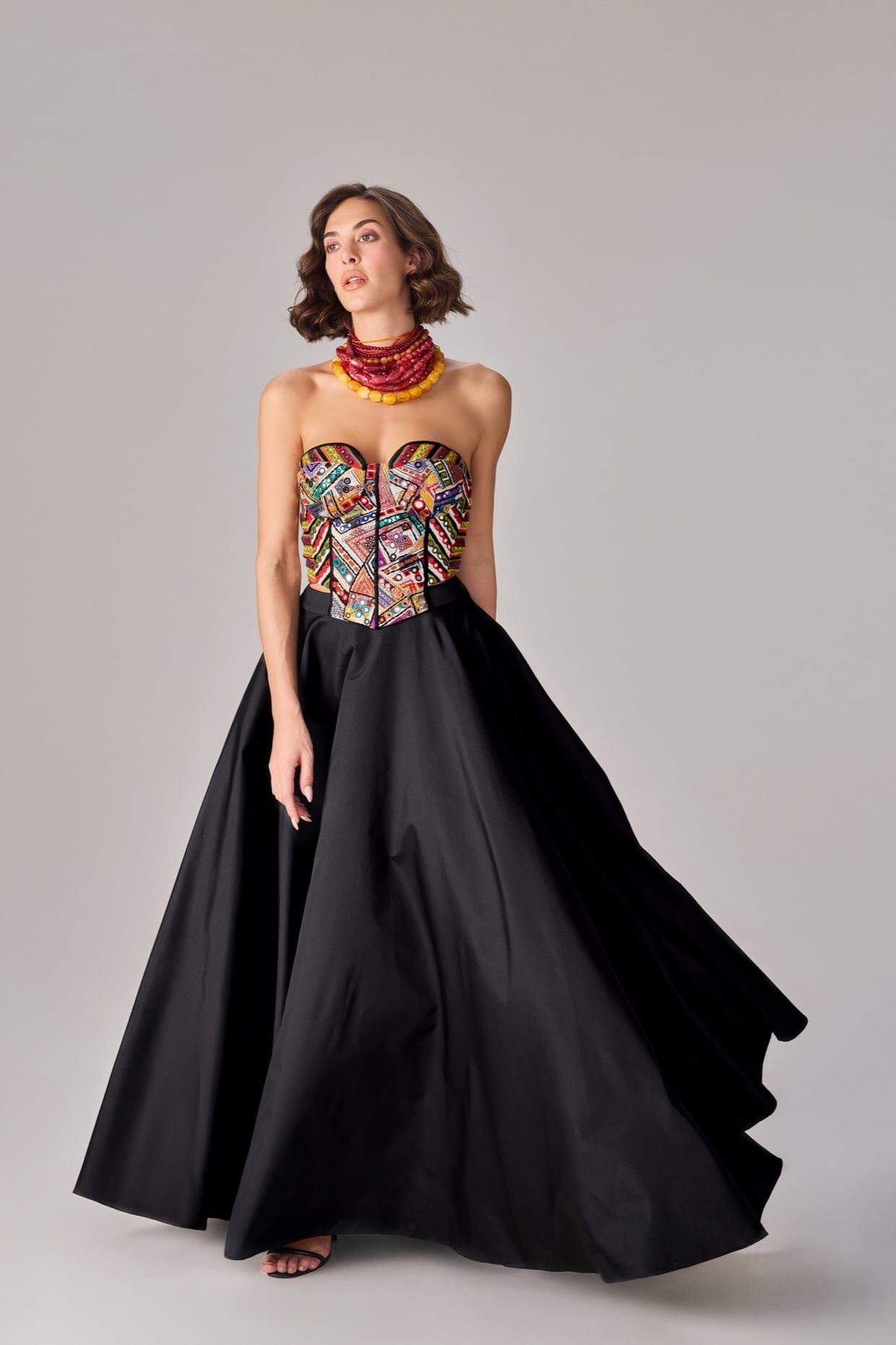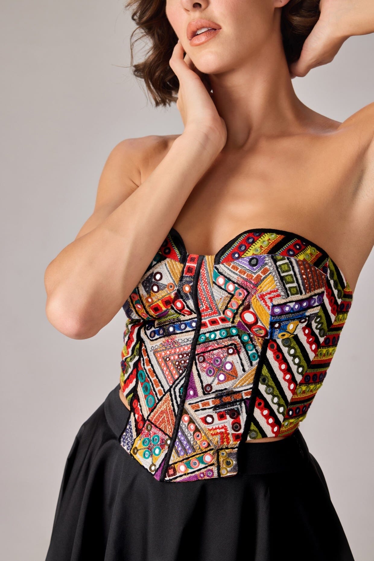 Intricate Mirror And Thread Work Hand Embroidered, Sweetheart Neck, Asymmetric Strapless Corset