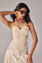 Abstract Floral Print Strapless, Asymmetric Corset With Quilting Detailing