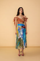 Multi Print Cold Shoulder Maxi Dress With Surplice Bodice, Gathered Waist And Side Keyhole Detailing