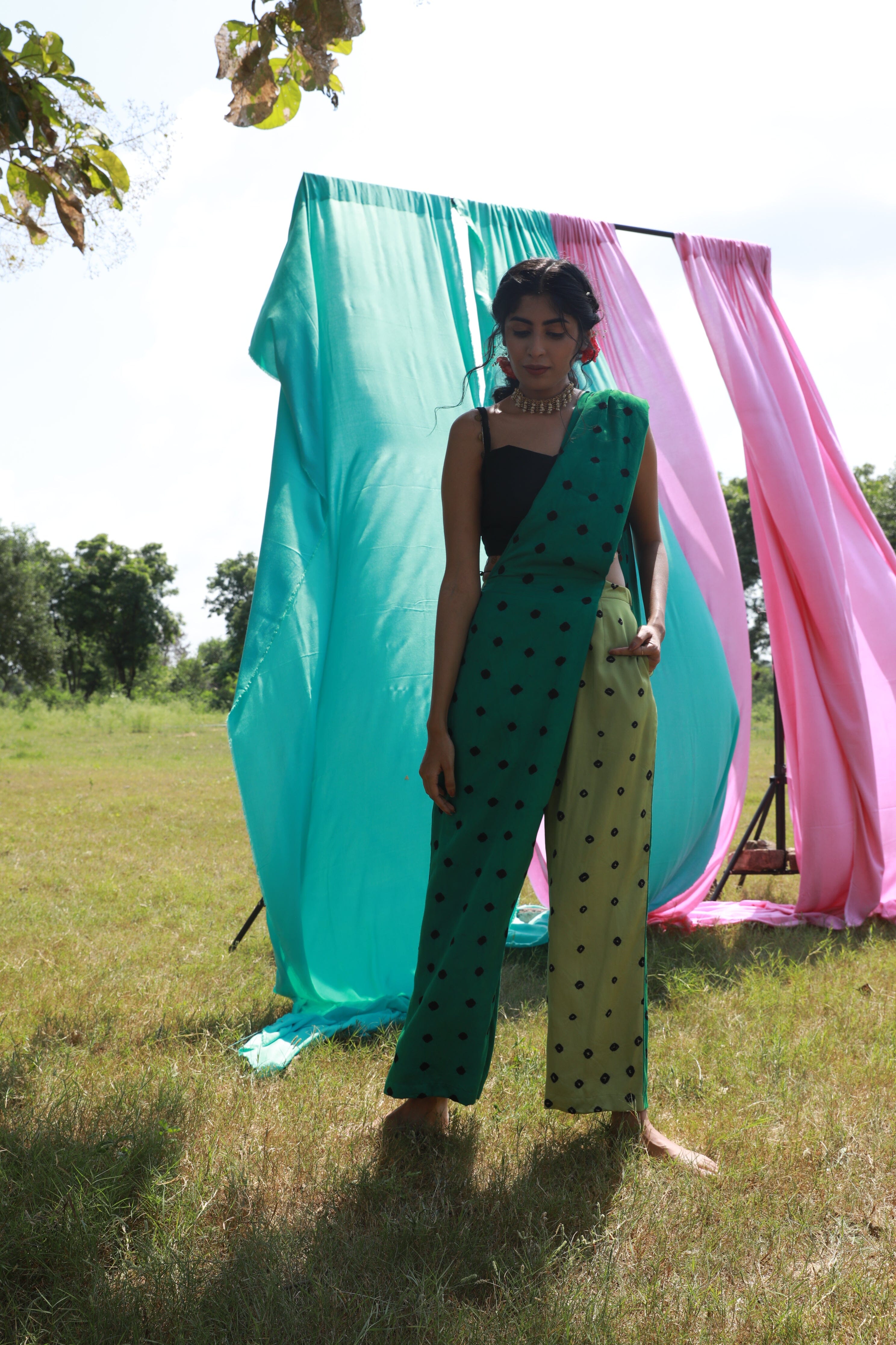 Pantalones geniales Bandhej Saree.