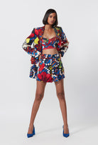 SHORTS: SHORTS DE CINTURA ALTA ESTAMPADO FLORAL ABSTRACTO
