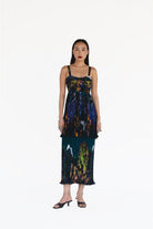 Blue Lily is heavenly printed solitude on its own, it is definitely a show stealer that has unique tone of land shore shades made of weightless pure silk. It has detailed drone shot painted on it and a splatter mix with hand pleated work.