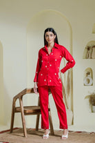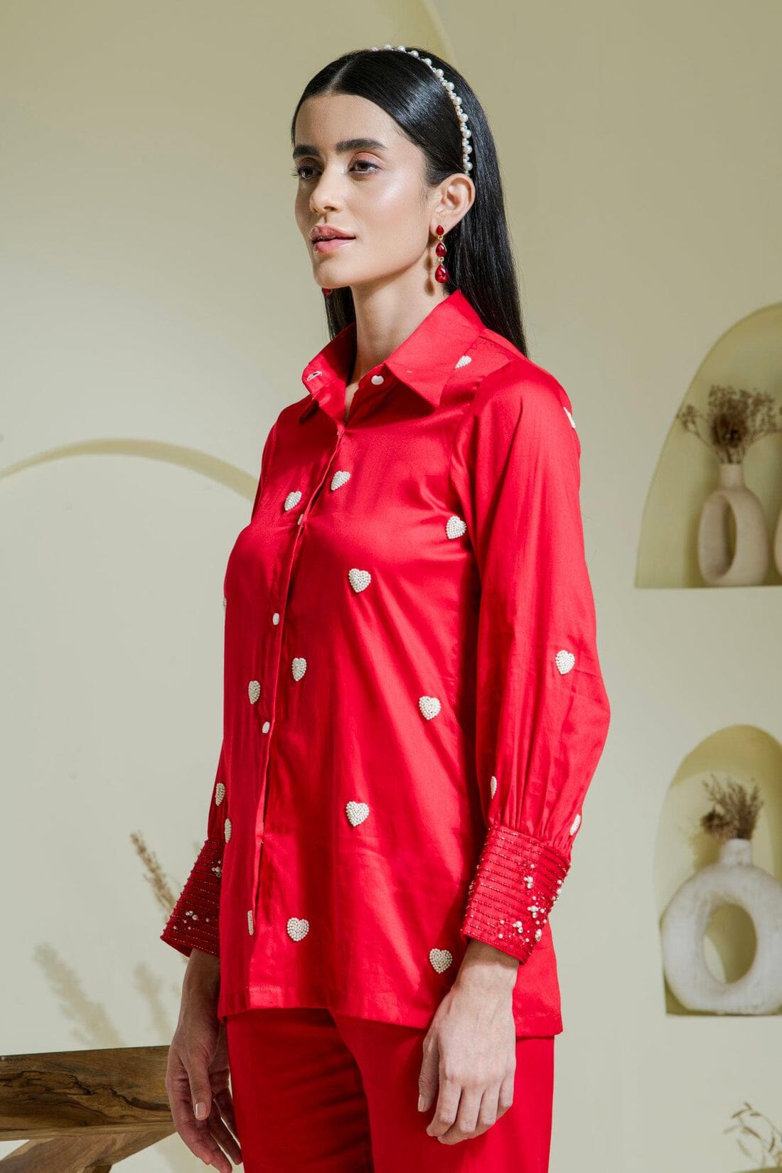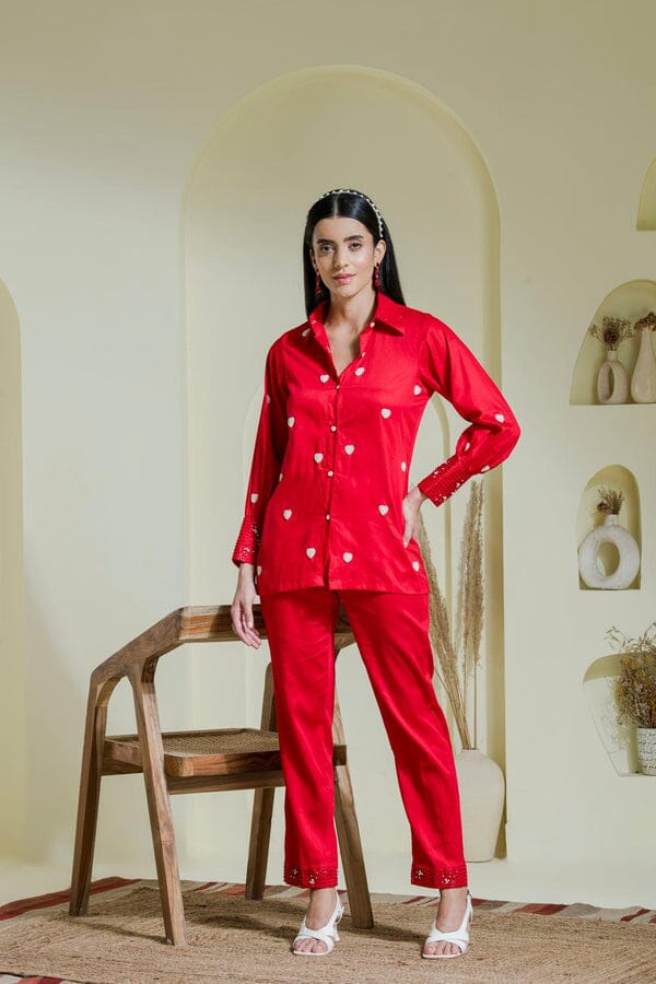 Crimson Red Heart Embroidered Co-ord (Set of 2)