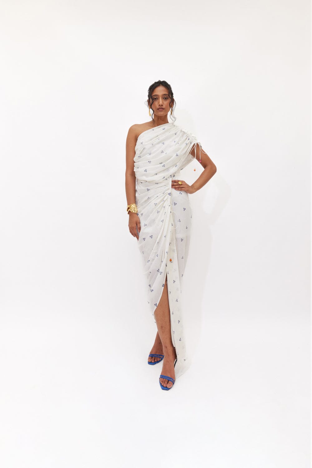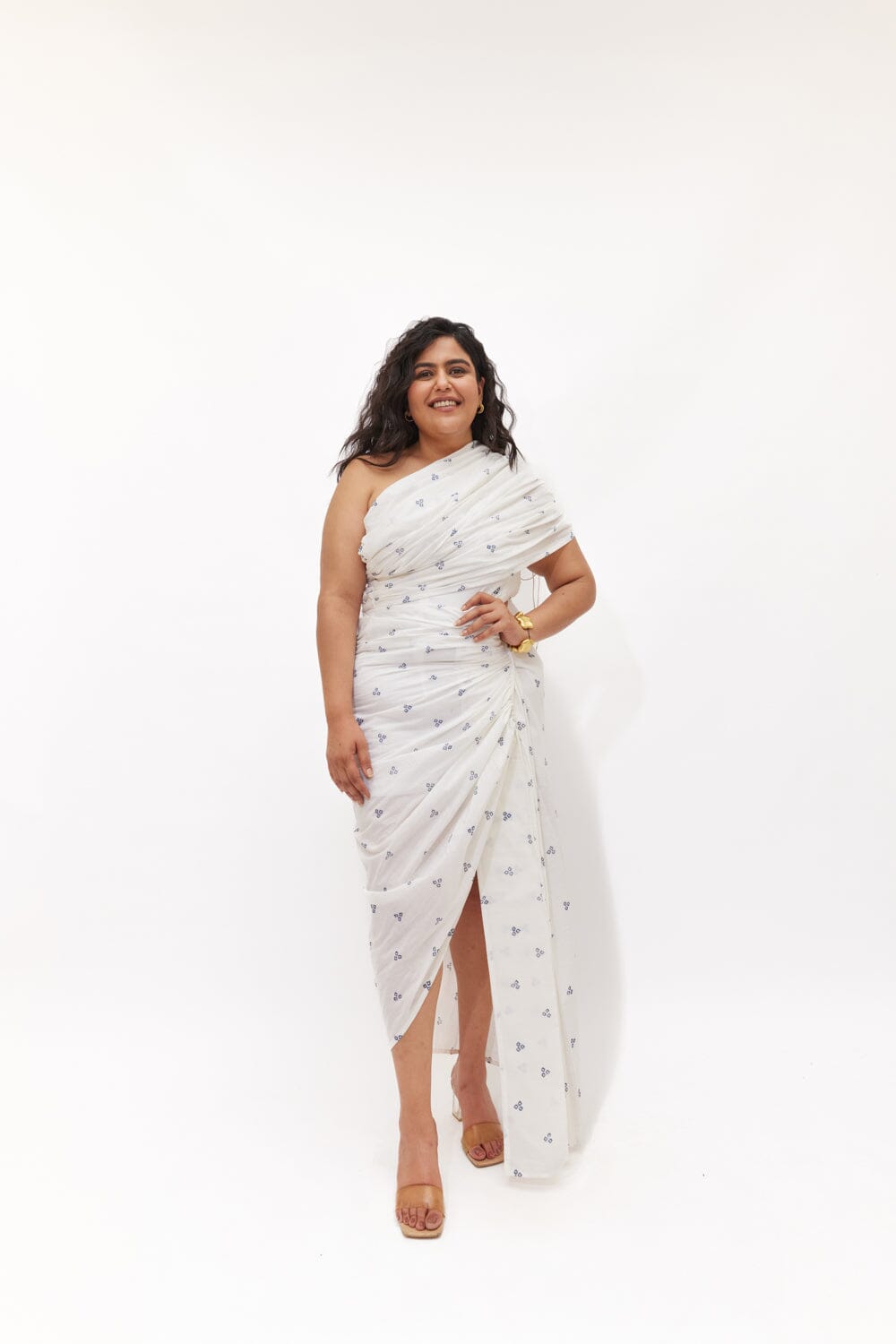 If chic yet effortless dressing is your vibe, then our hand block printed draped dress with one shoulder is the perfect pick for you.