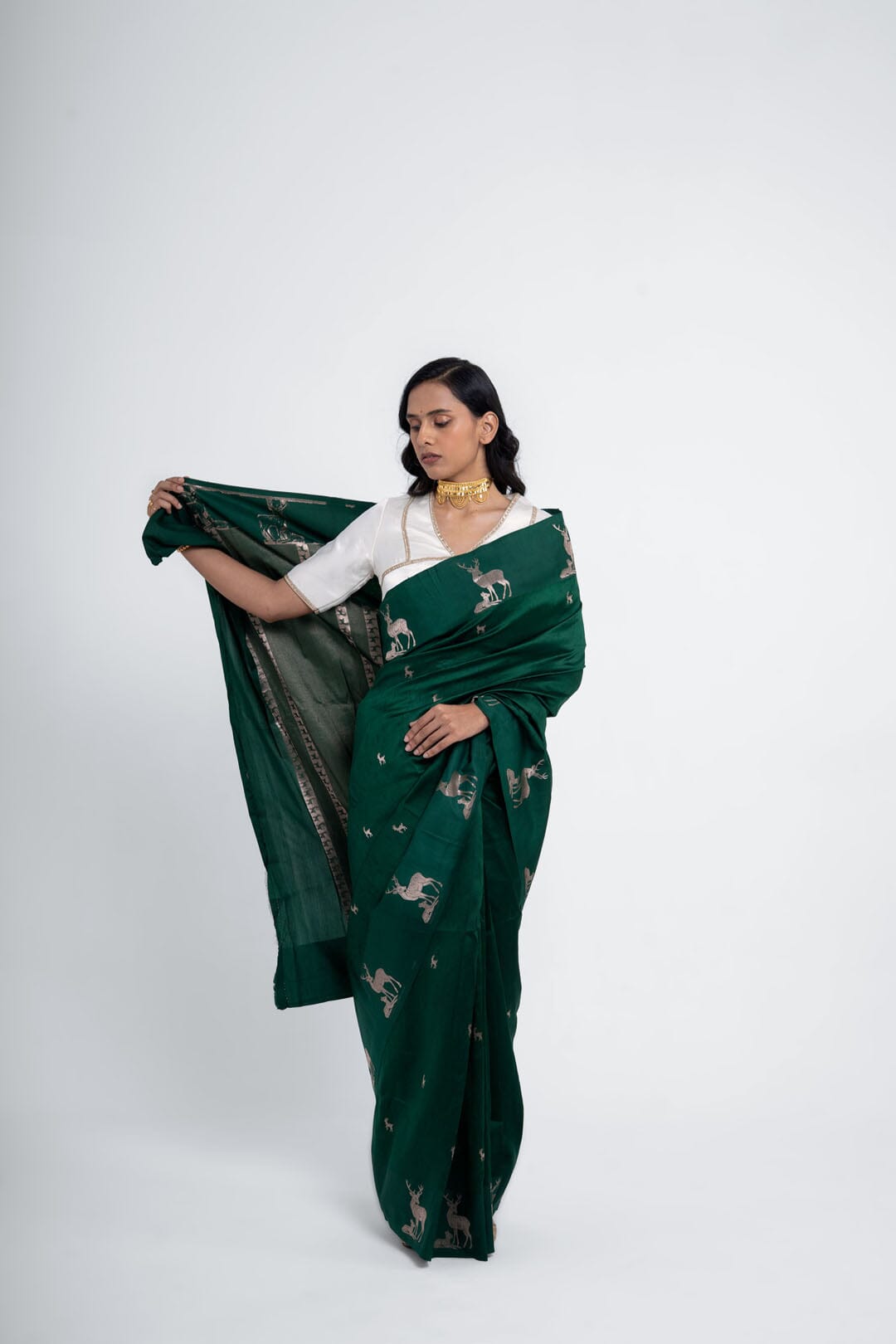 Hiran Green Pure Silk Saree