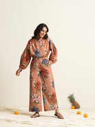 A printed straight pants featuring an elasticated back waist for extra comfort.