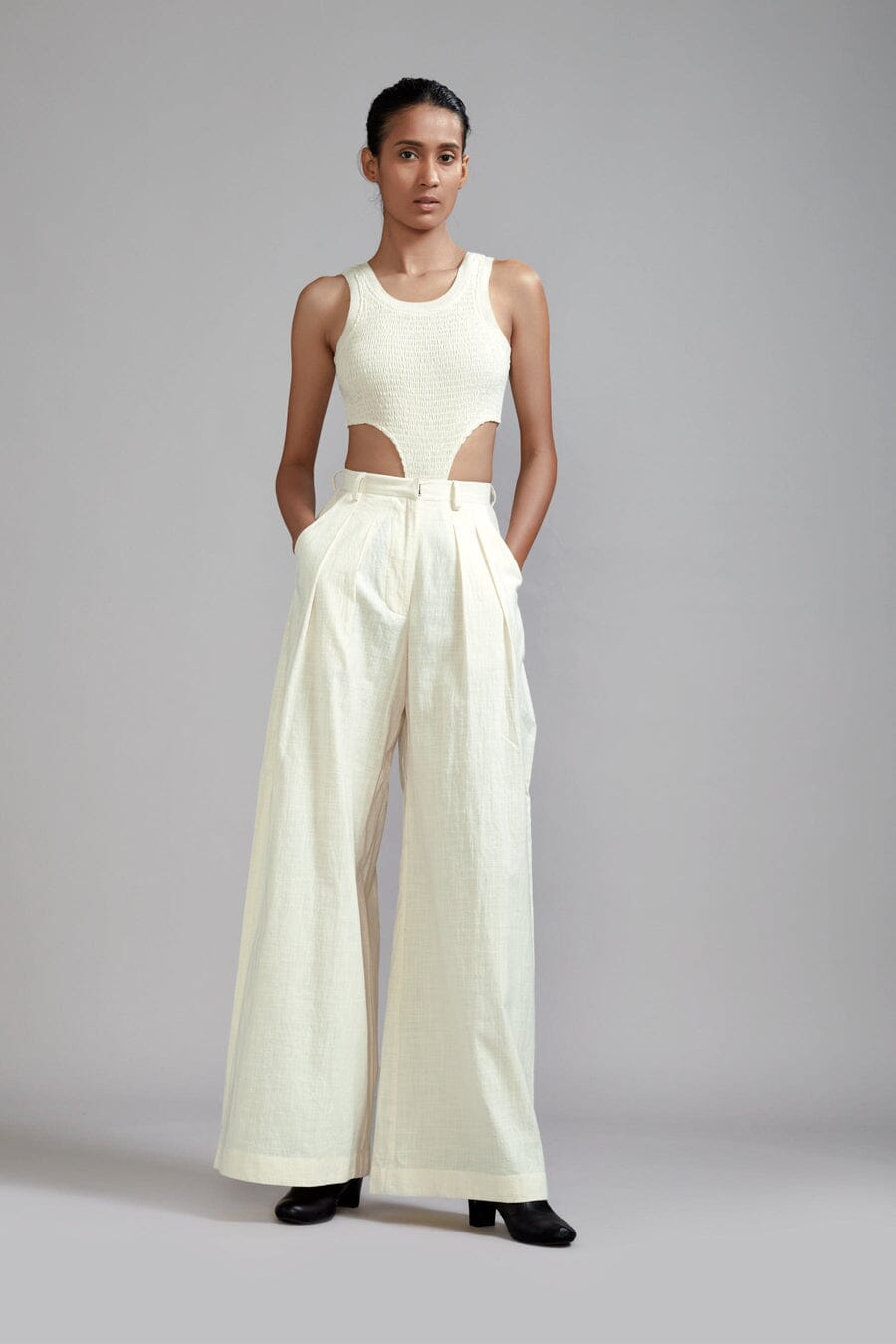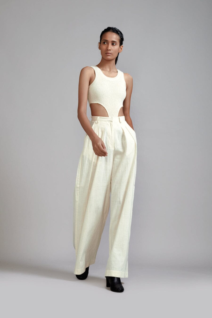 Crafted in handwoven-cotton this smocked bodysuit has cotton rib-detailing on the neckline and armhole.