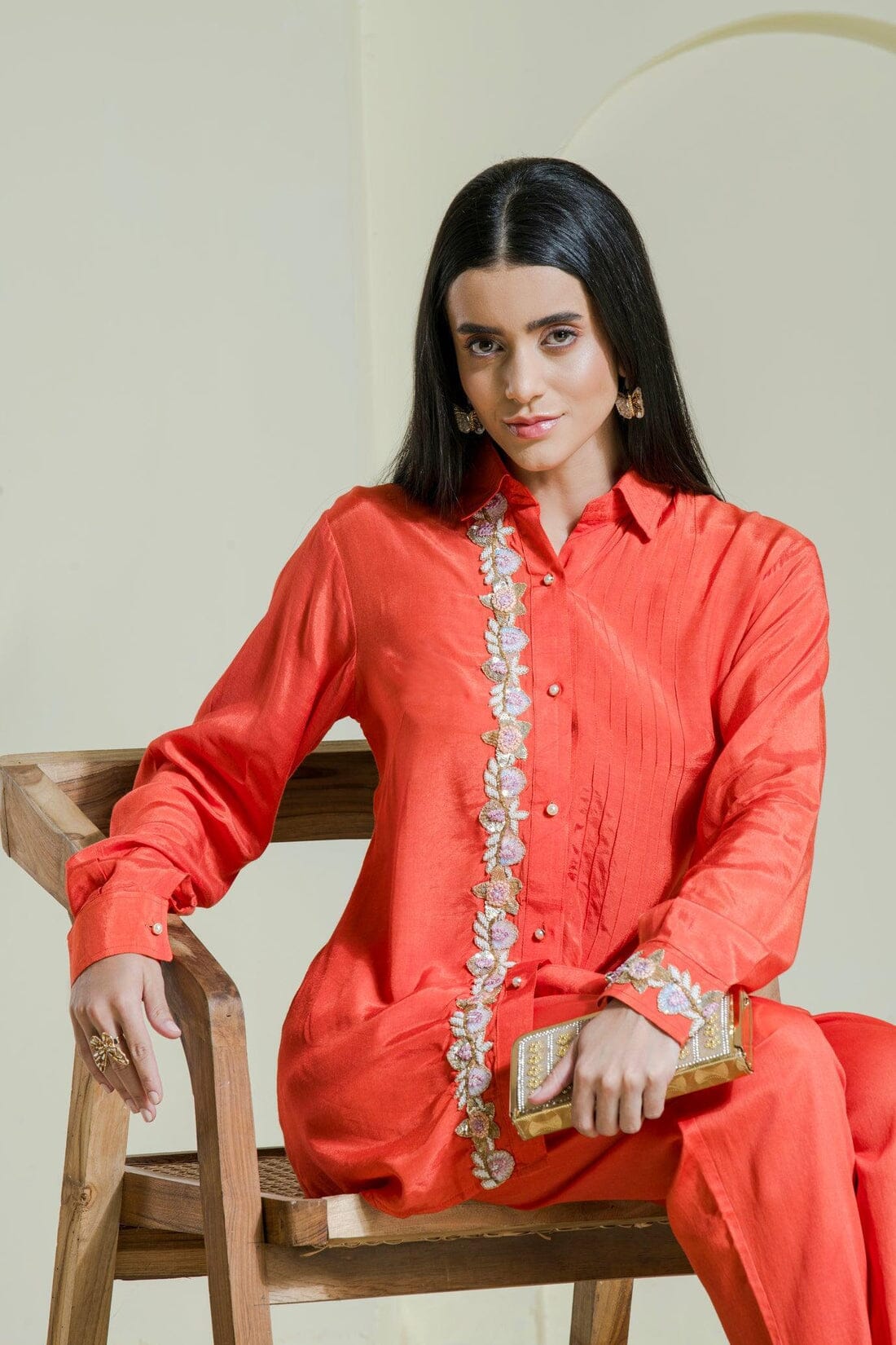 Tangerine Hand Embroidered Co-ord (Set of 2)