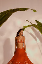PALM PARADISE LEHENGA SET - PLAM TREE EMBROIDERED LEHENGA WITH APPLIQUE BUSTIER AND DUPATTA