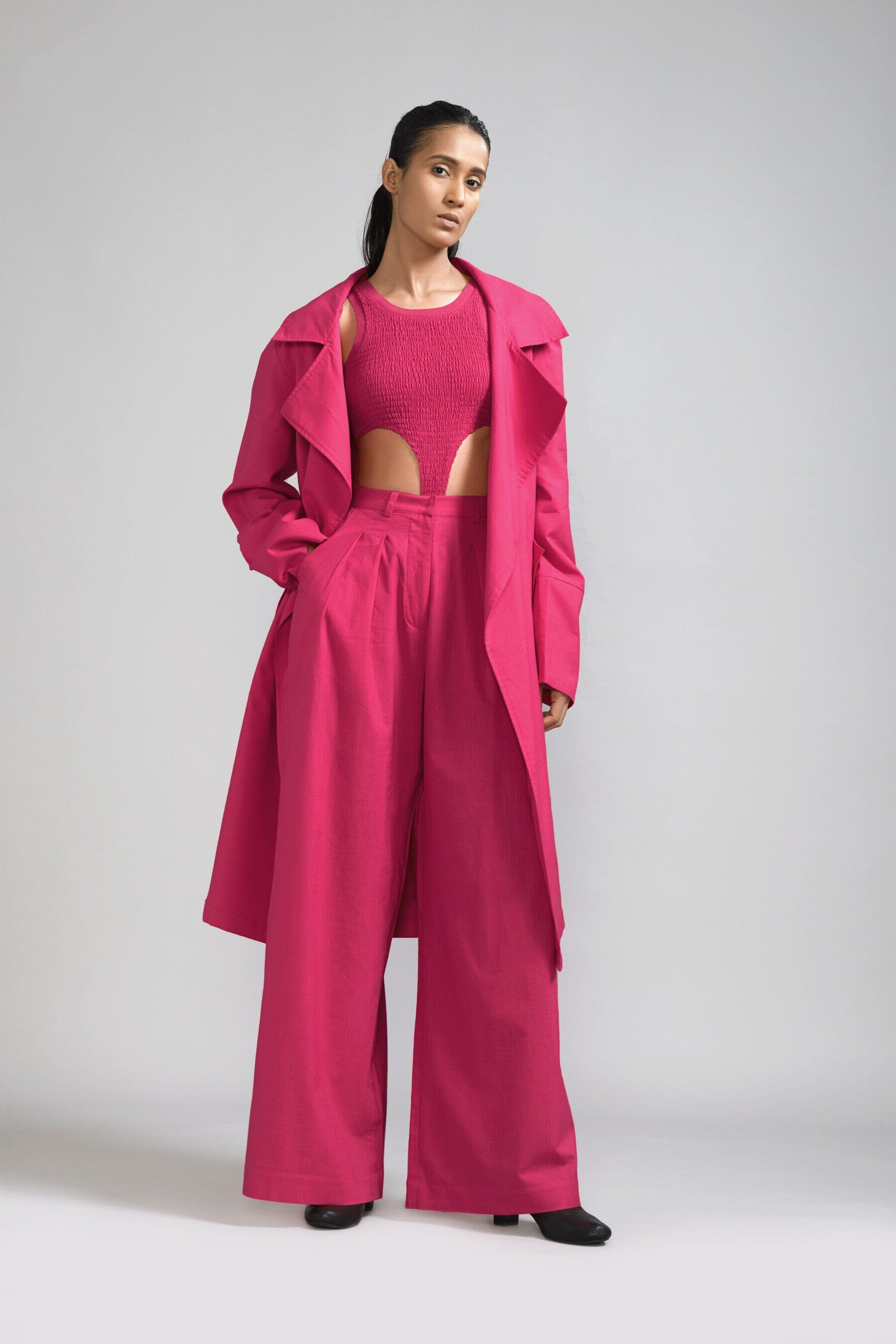 Una gabardina larga clásica con bolsillos laterales y cinturón de lona.