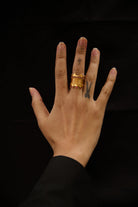 Anillo ajustable chapado en oro de 22 quilates con detalles intrincados y piedras de cristal rosa
