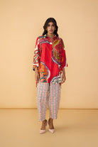 Tunic : Abstract Print Batwing Shirt With Intricate Hand Embroidered Cutwork Detailing