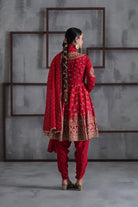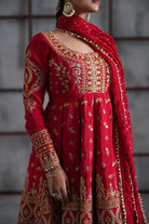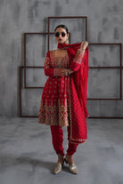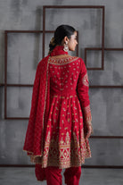 Red Embroidered Anarkali, Tulip Pants and Dupatta