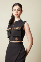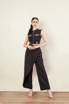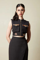 Bomber Jacket -Metal zipper -Sleeveless -Front pockets -Pants with Flap -South Indian jewellery embellishment