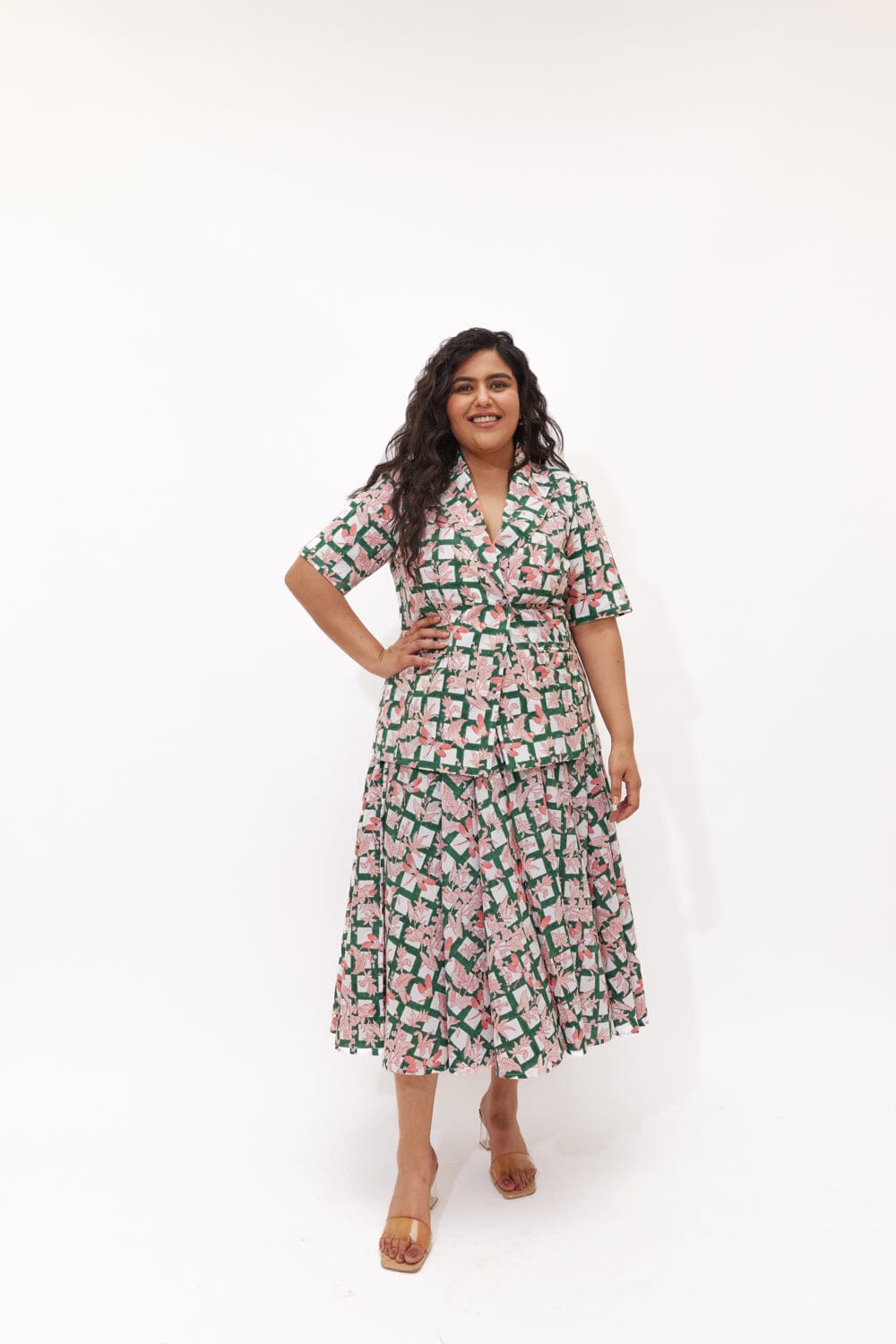Where structure meets whimsy — a set with sharp lines and flared charm.