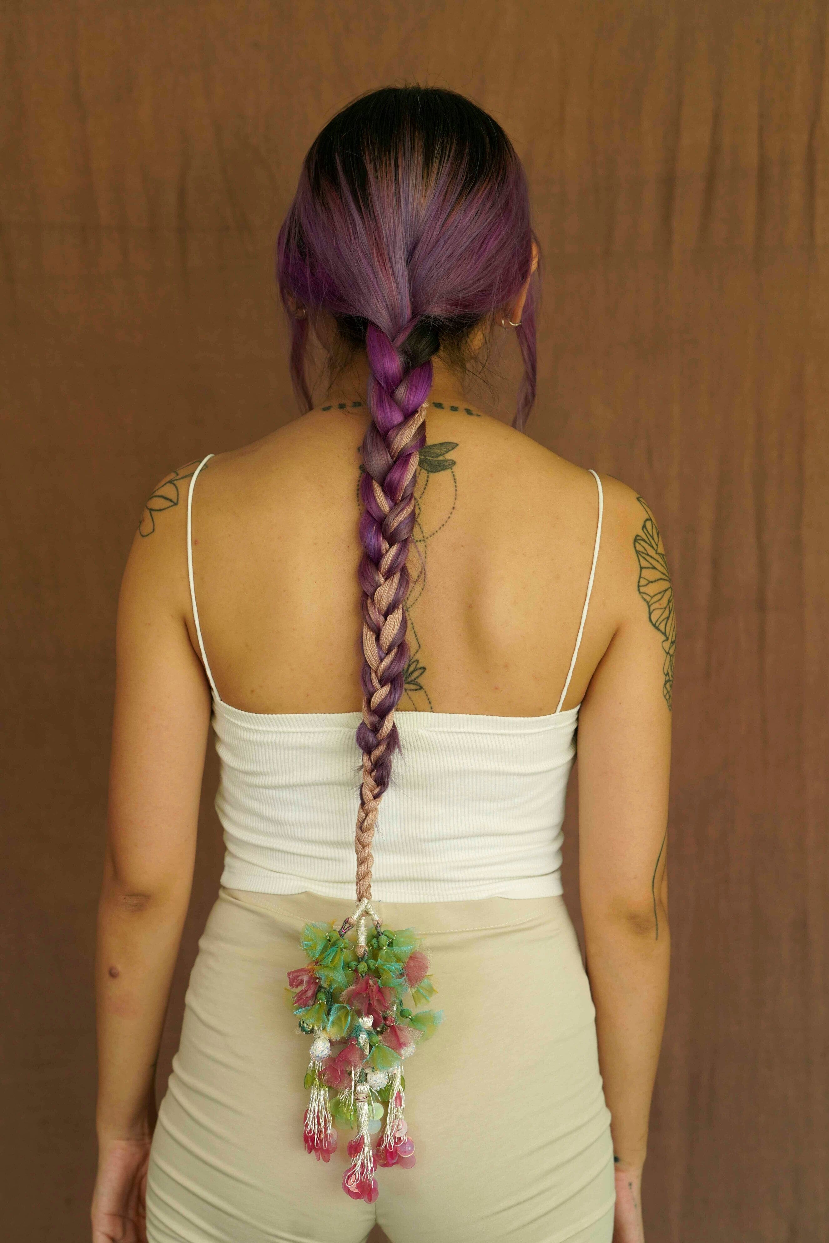 El celeste parandi con borlas de organza y tejido combinado con encaje y secuencia de gota es tan impresionante como parece.