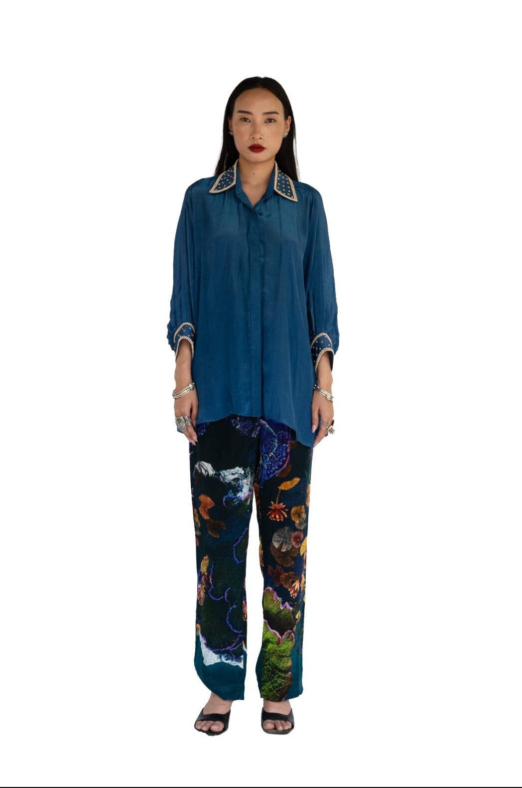Sudoku shirt comes with finely carved hand embroidery, it is a easy silk silhouette that is must have for an ideal setting of fort evenings, a fancy vacation or brunch out of the city, one of the hassle free shirt that provides you with all-day comfort while making you look chic !