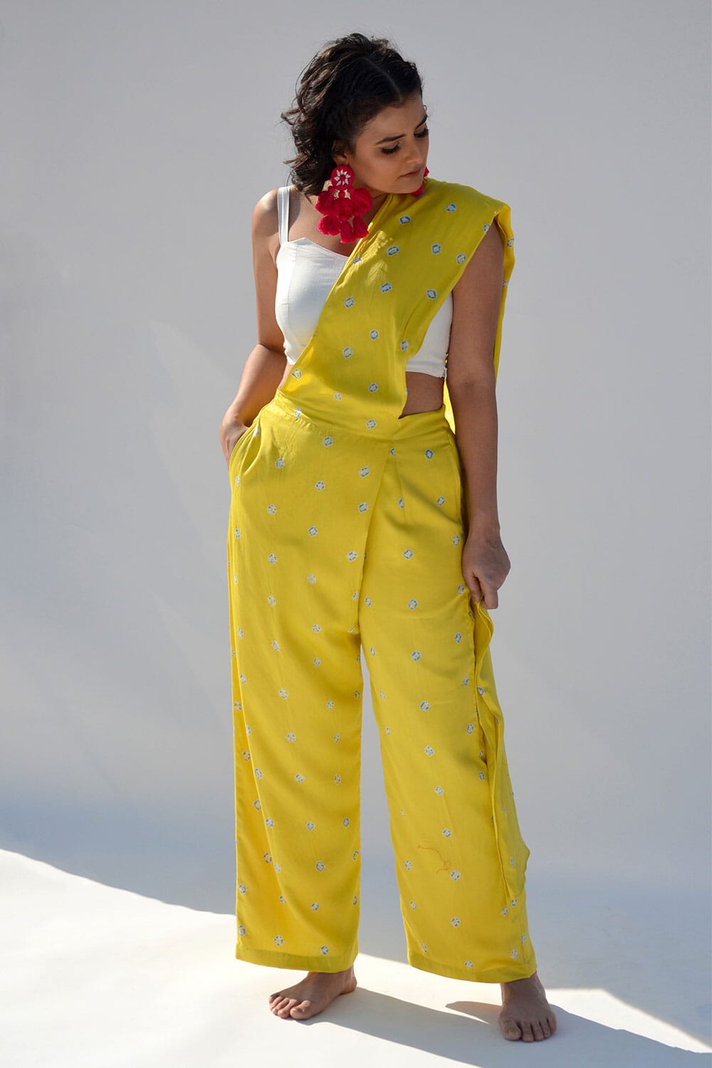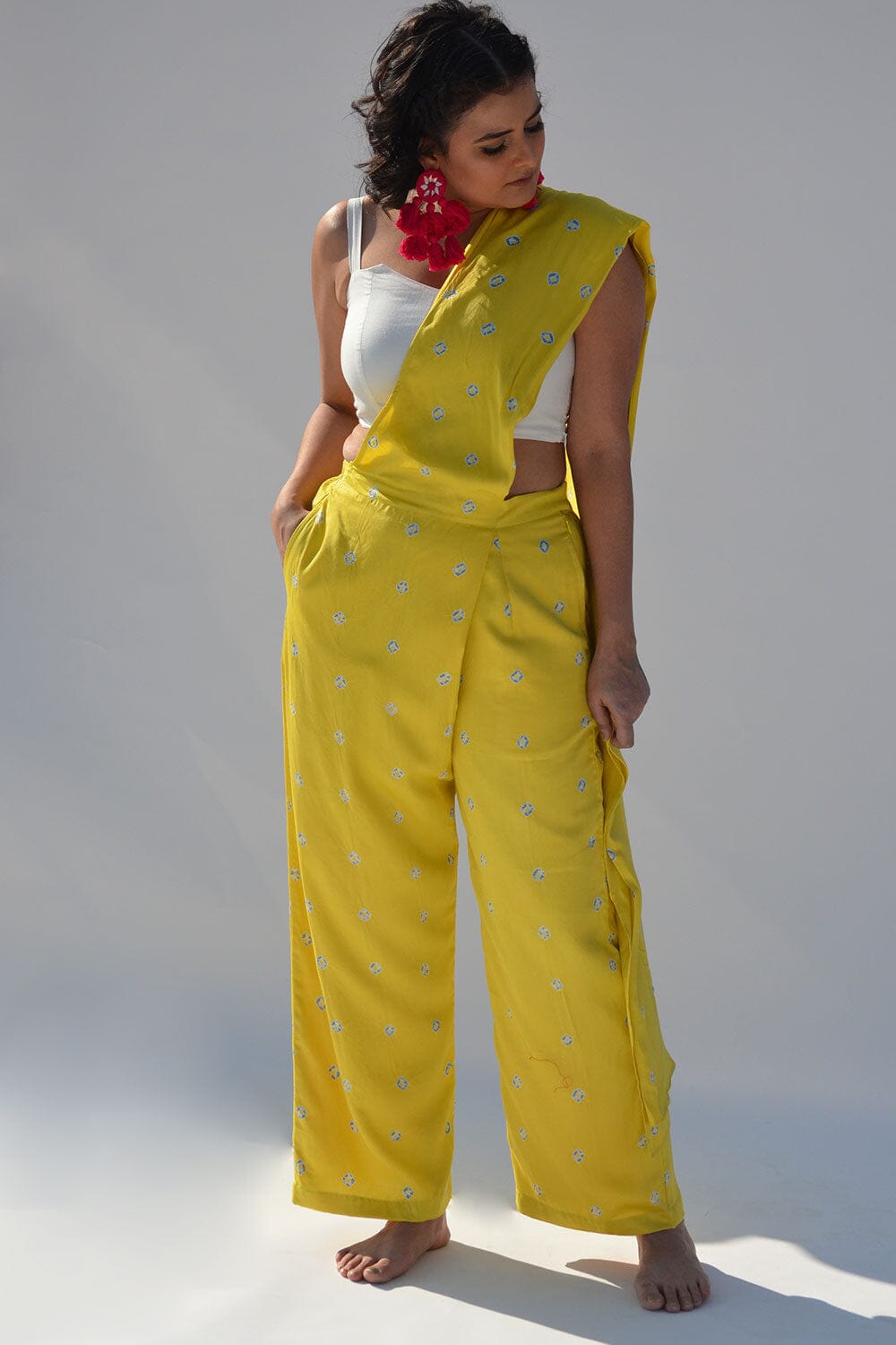 ¿tradicional? Adorna con estos pantalones Bandhej Saree súper geniales.