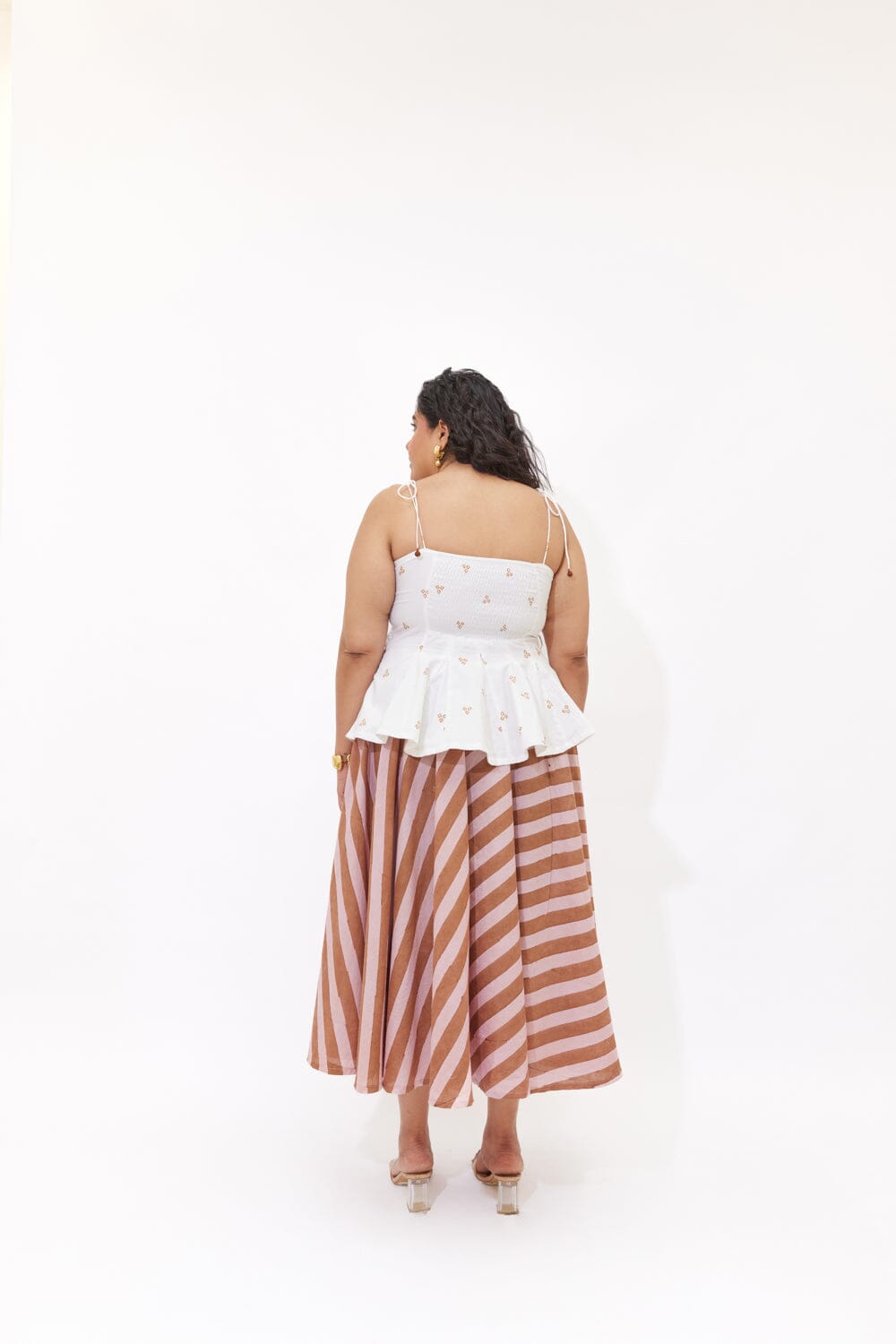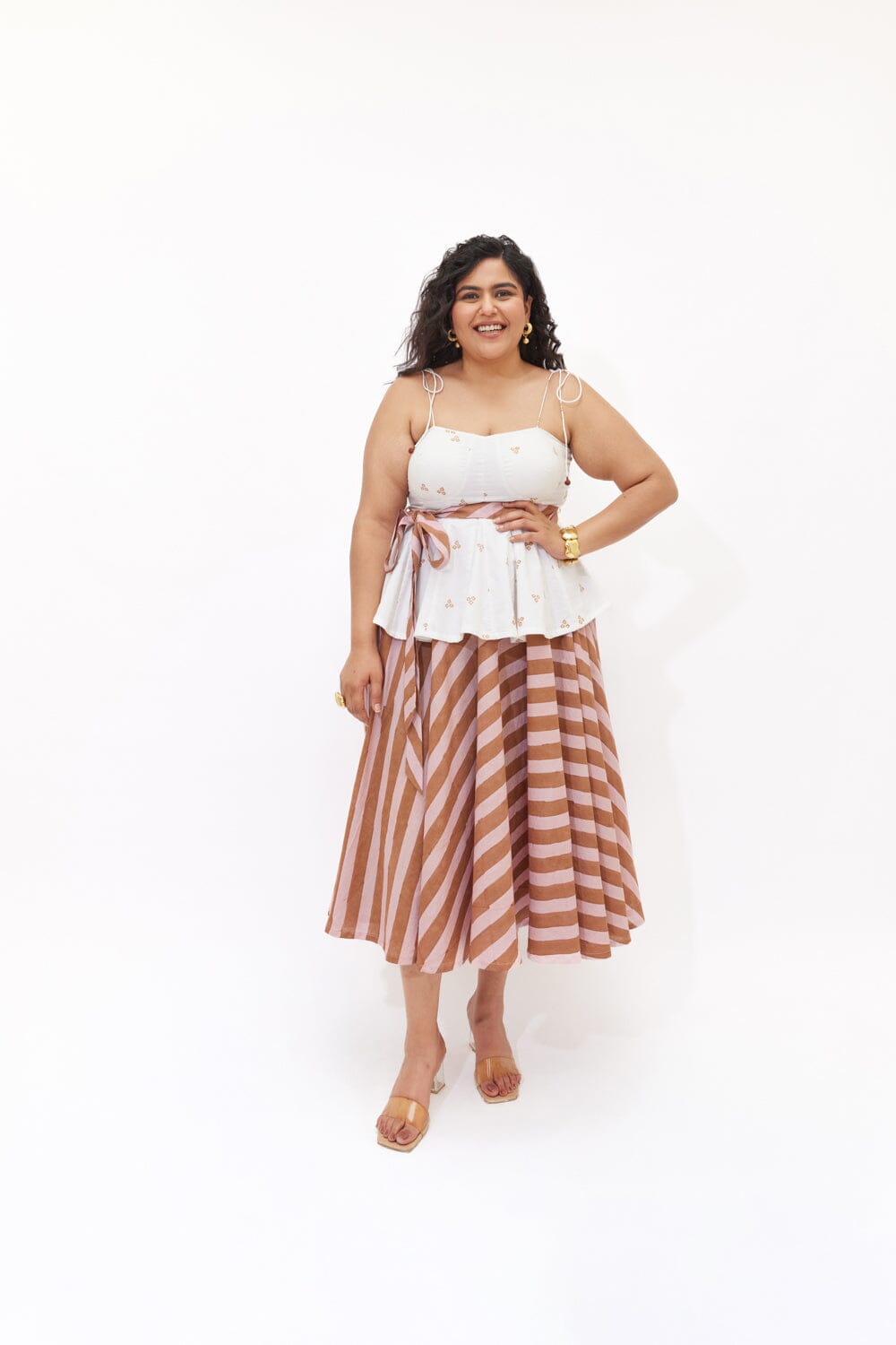 The peplum top comes with bust cups, elasticated back, side seam zipper and tie up shoulder straps for that added comfort.