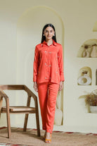 Vivid Orange Embroidered Satin Co-ord (Set of 2)