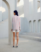 The White Zip Shirt is made of double georgette. It features a mandarin collar and zipper detailing with floral and geometric print play in classic PRG style.