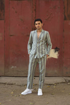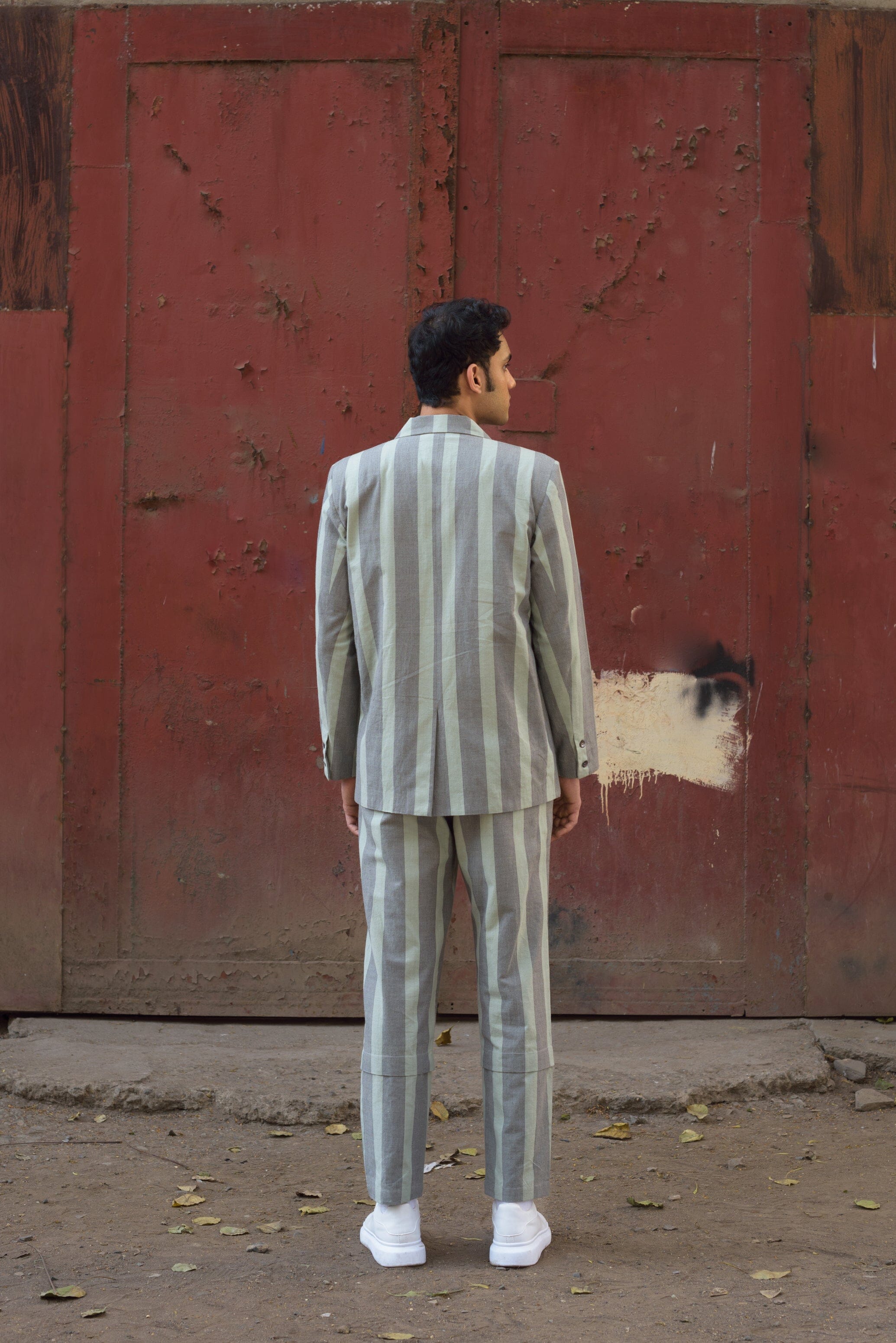 Neatly tailored single breasted jacket with two buttons. Asymmetric collar lapel. Straight fit for a relaxed mood. Defined shoulder using shoulder pads. Flap pockets. Back centre vent. Fully lined. Pair it with the Drawstring Waist Pants for a complete suit.