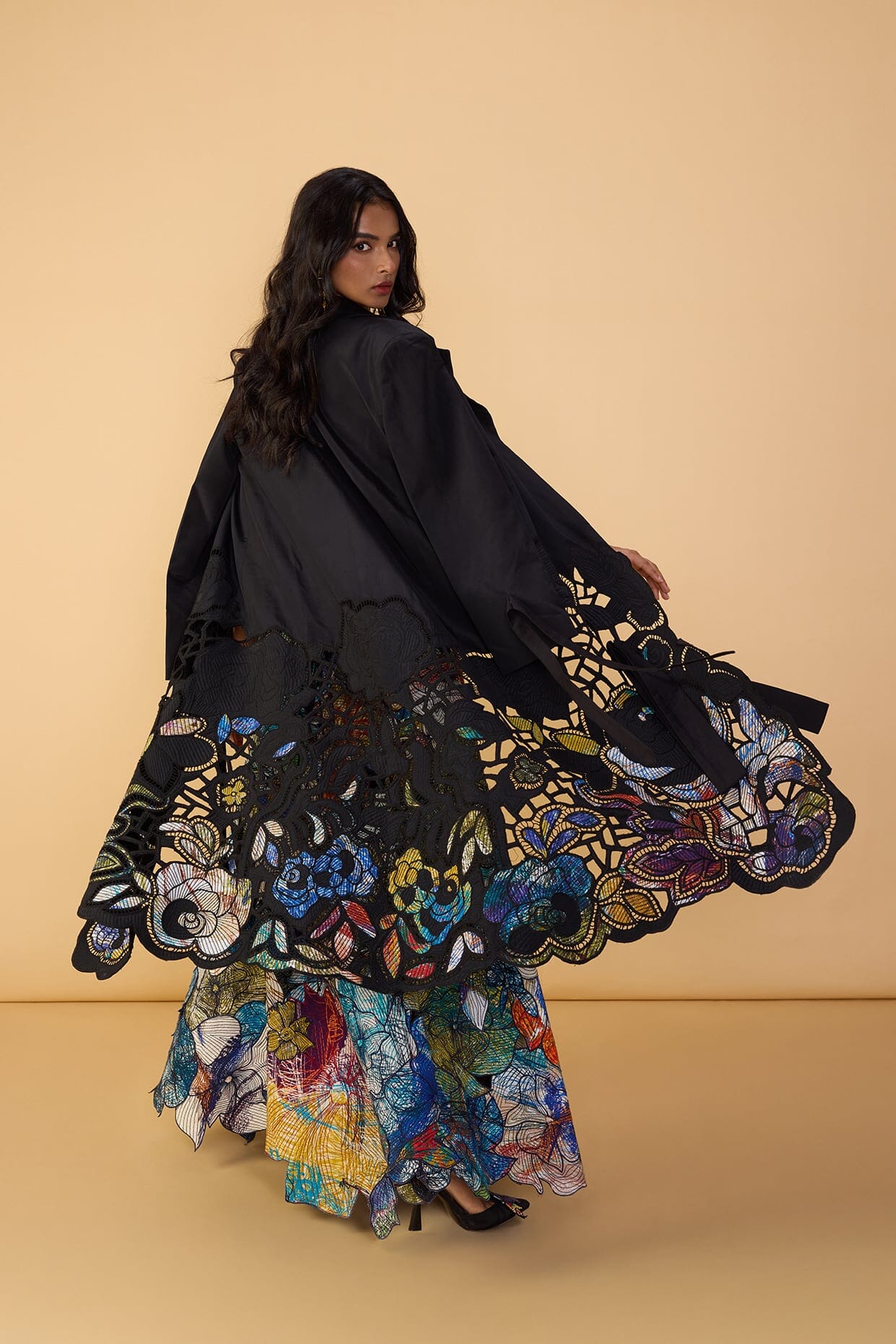 Trench : Intricate Hand Embroidered Floral Cutwork Applique Trench Coat With Detachable Belt