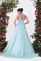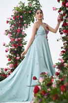 Tiffany blue satin organza embroidered gown.