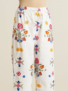 A printed straight pants featuring an elasticated waist and a tie-up for extra comfort.