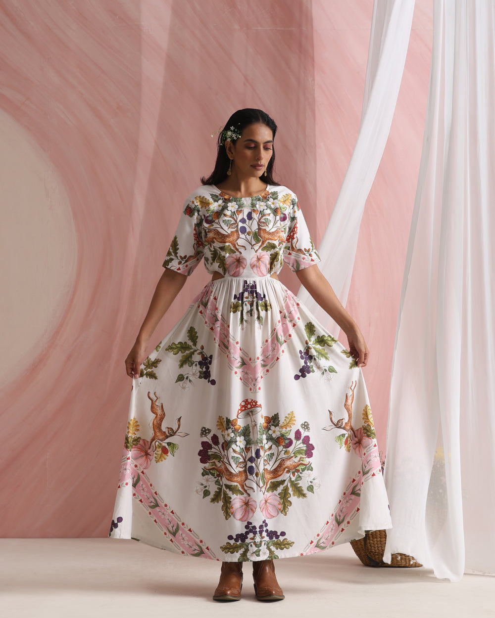 Ivory and golden tissue kurta featuring intricate work on the yoke, paired with elegant pants and a vibrant orange applique handwork dupatta.