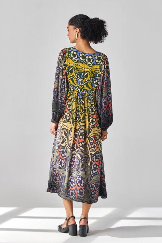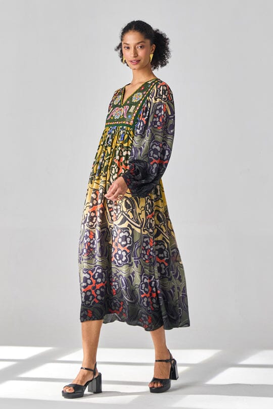 Find your rotational favourite in this ombré-printed Lado dress, featuring intricate thread and sequin detailing on the yoke. The gradient hues and subtle sparkle make it perfect for both day and evening wear.
