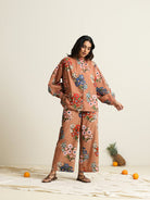 This Meadow Co-ord Set features a relaxed fit shirt and straight pants, both adorned with a hand rendered floral print. The delicate fagoting detail sit beautifully on the shirt yoke. The pants come with an elasticated waist and a tie up. Perfect for any occasion, from a day out to a night in.