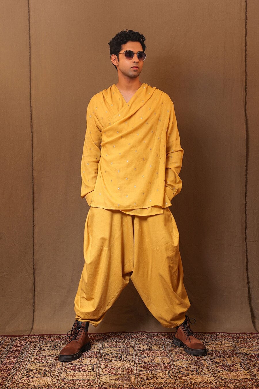 Overlap shirt made in embroidered handspun soft cotton. Side buttons and cuffs on the sleeves comes with baggy pants to complete the look. Set of 2 PCS.The fabric we are using is 100% cotton which is soft and will suit any skin type. The fabric gets softer with each wash.