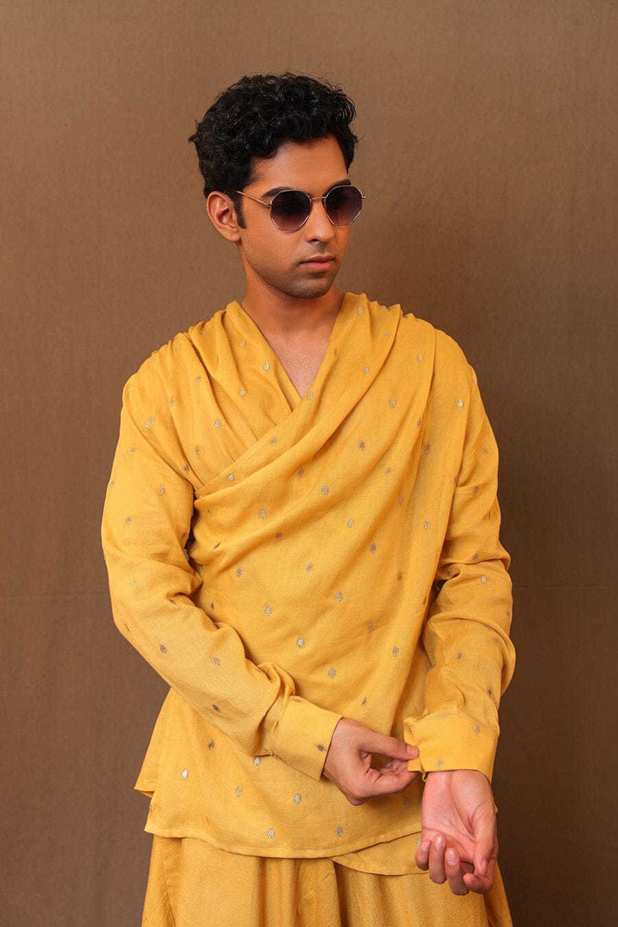 Mustard EMB Zari Spade Overlap Set (2 PCS)