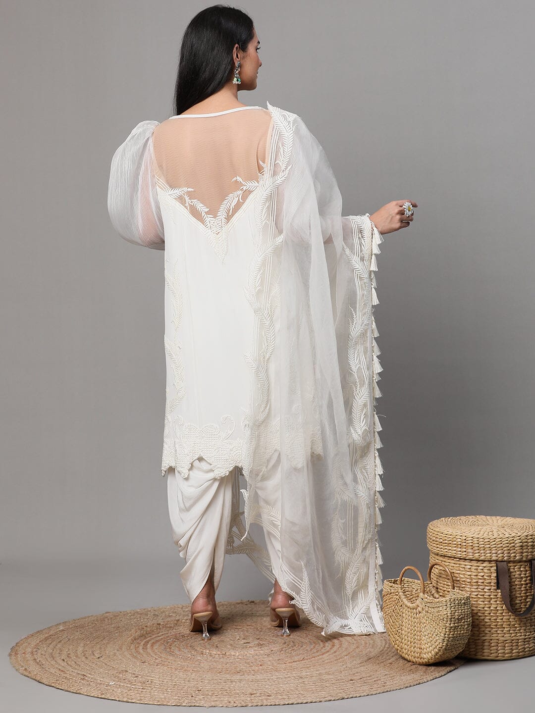 Off White Colour Suit With Organza Dupatta,