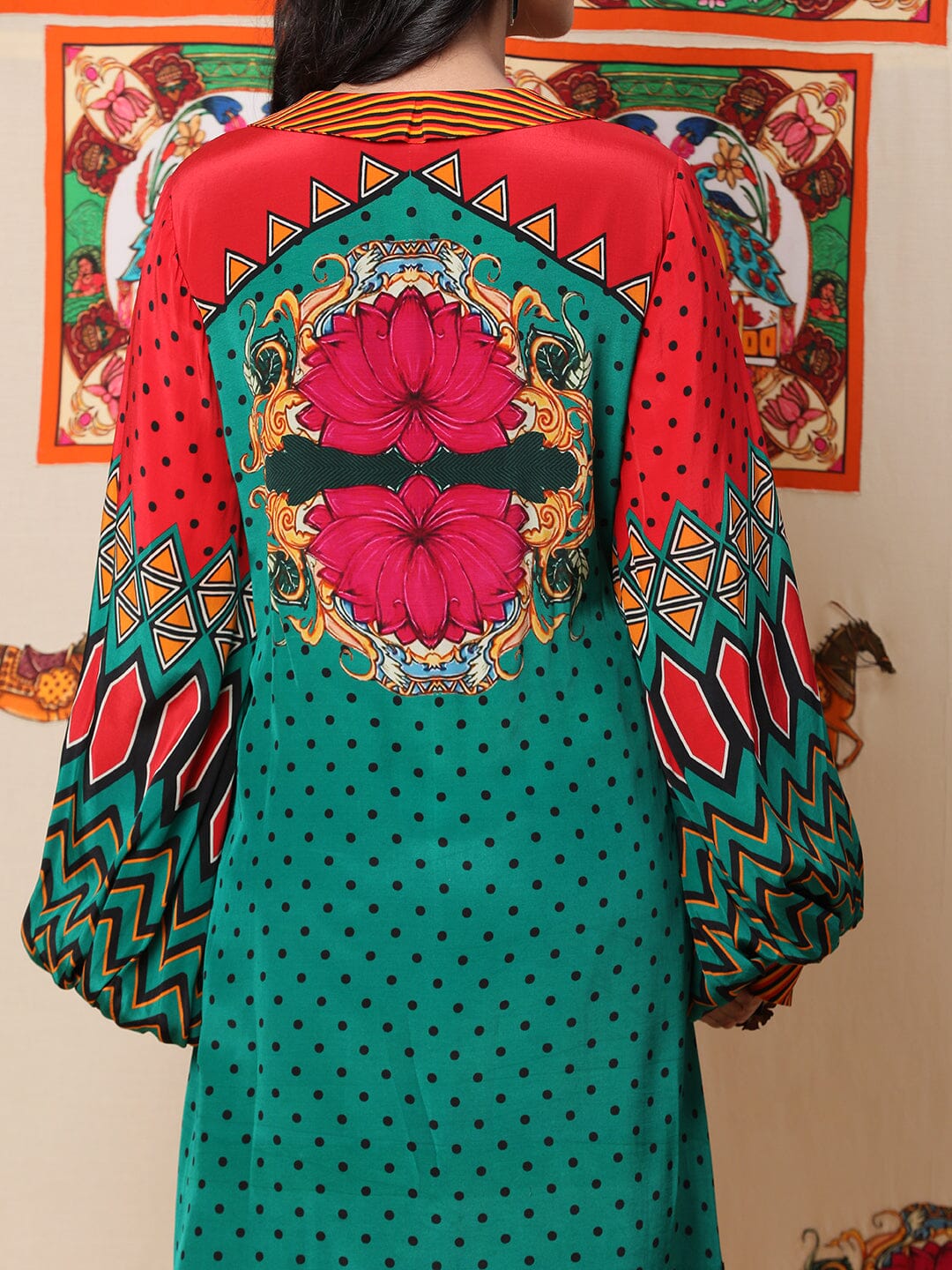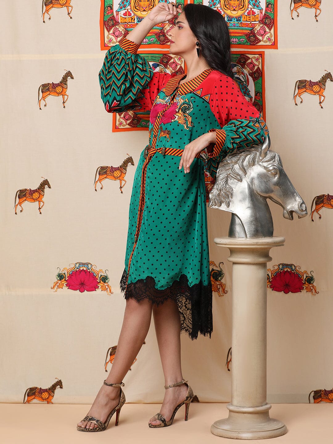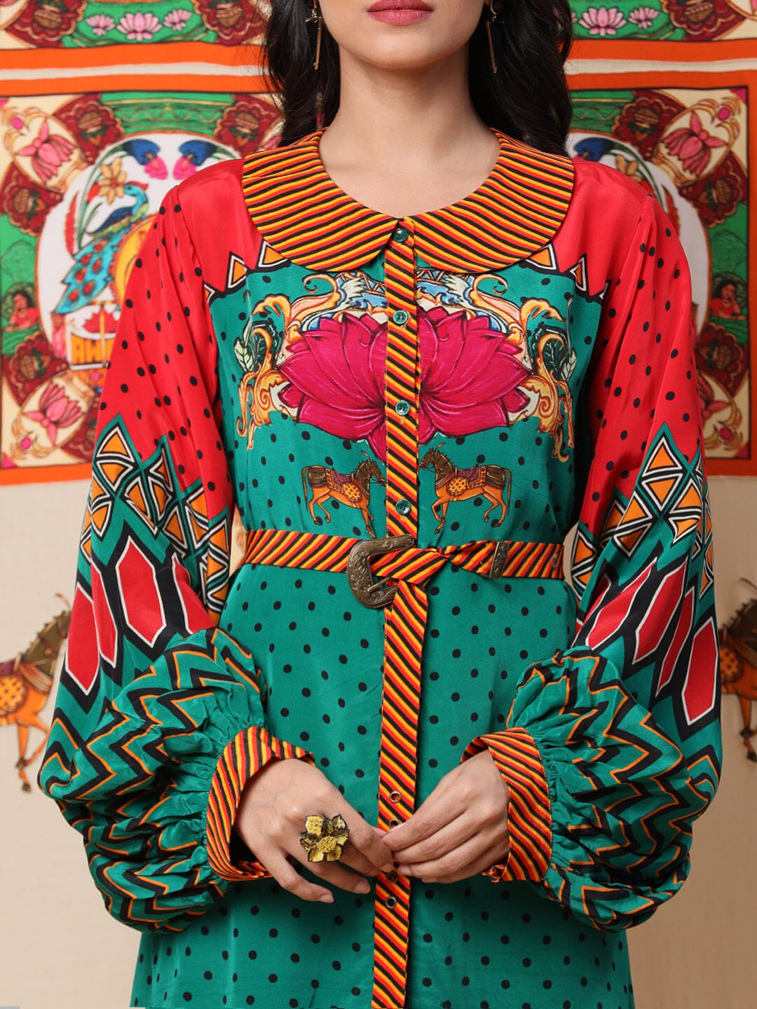Bottle green Colour Printed Tunic Dress , Lotus print