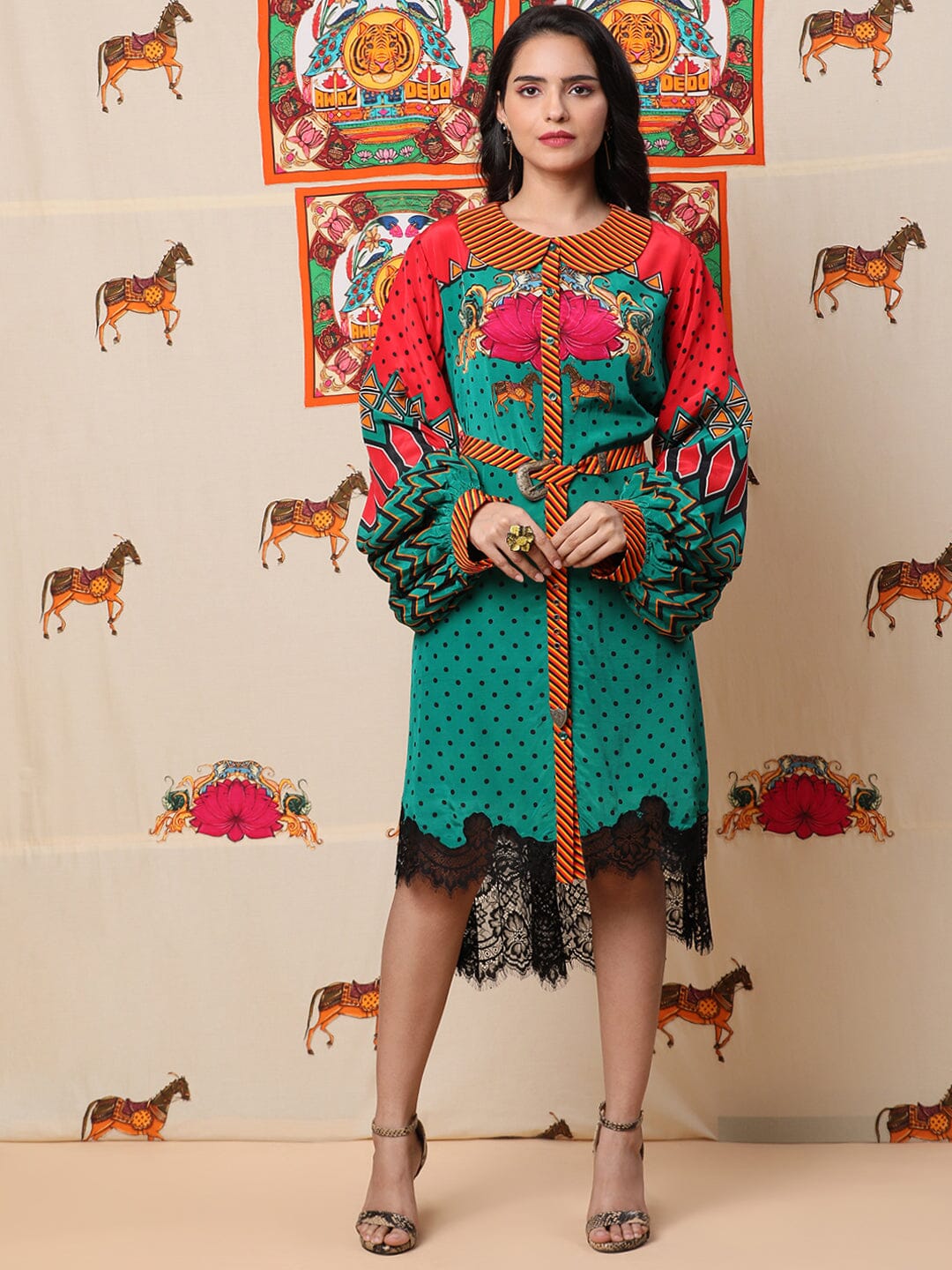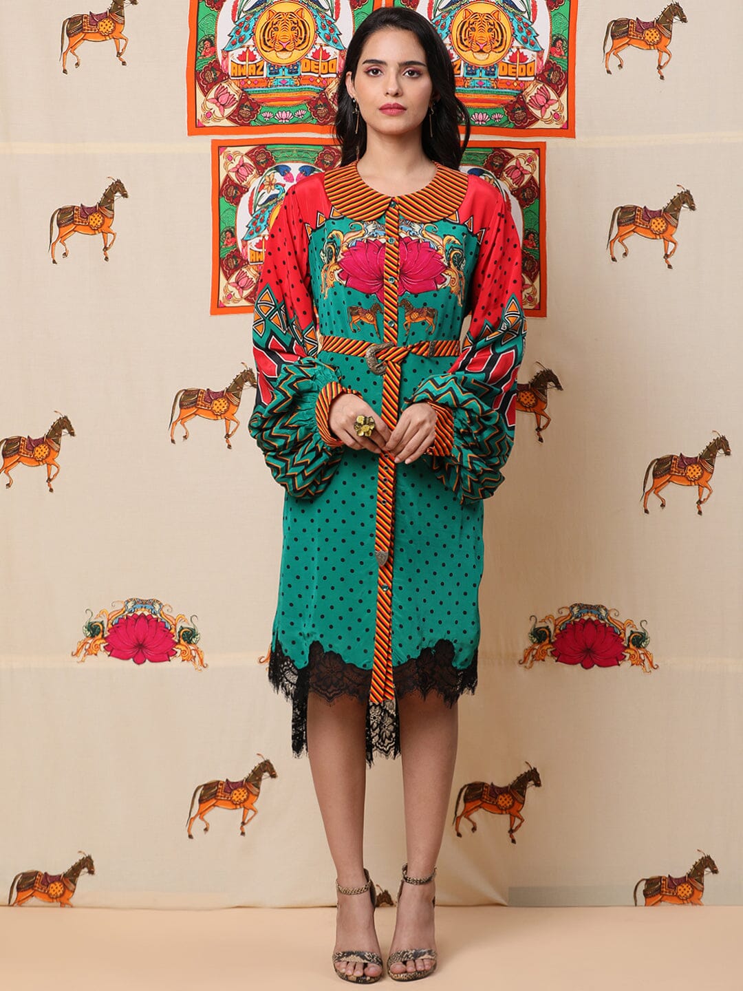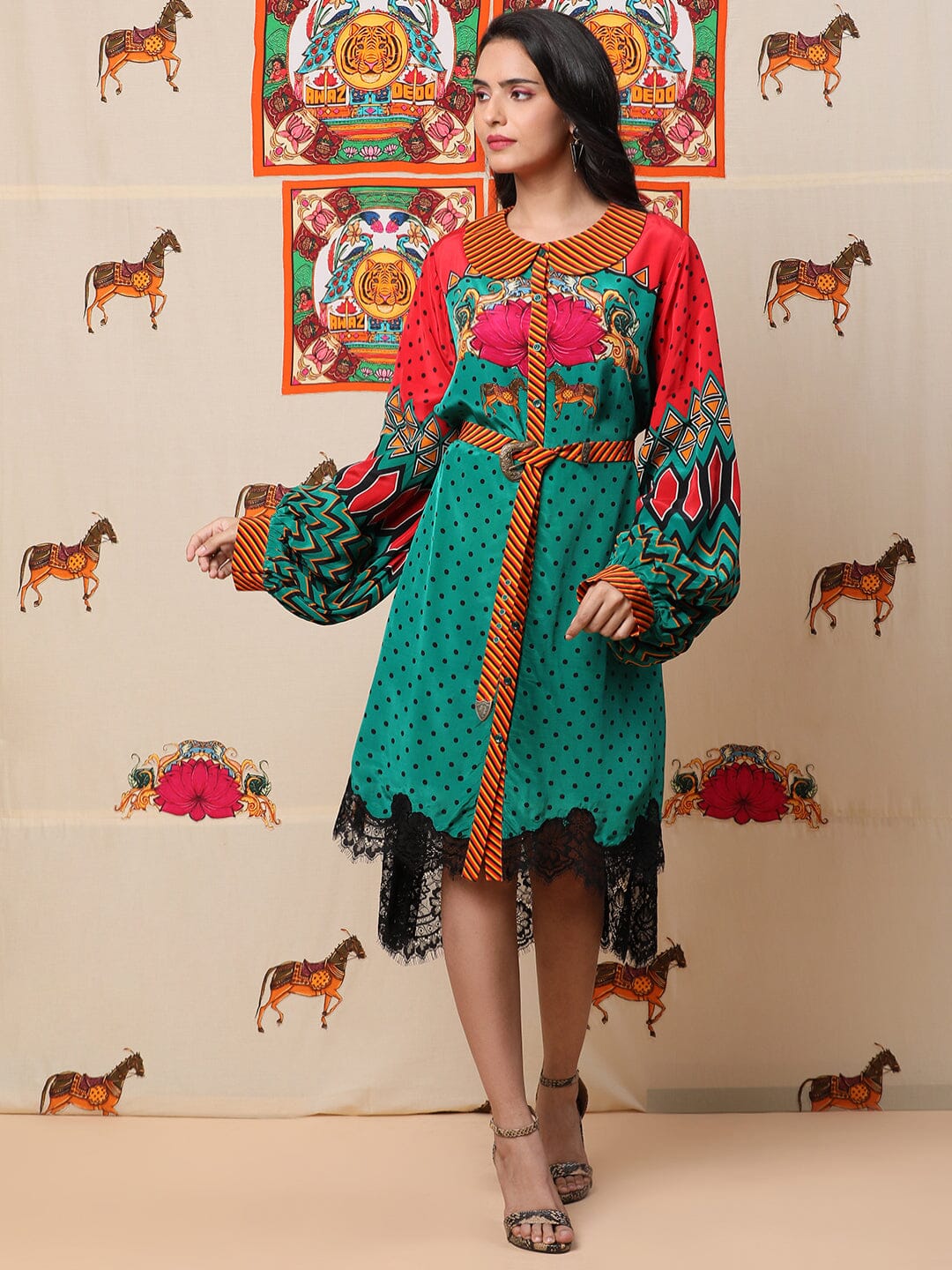 Bottle green Colour Printed Tunic Dress , Lotus print