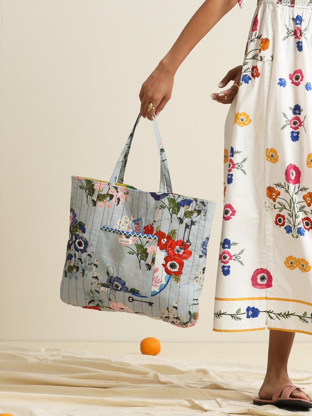 Made from soft cotton fabric, this tote bag features a beautiful floral print and durable quilted construction. Perfect for a day out or a weekend getaway, it promises to add a touch of sophistication to any outfit.